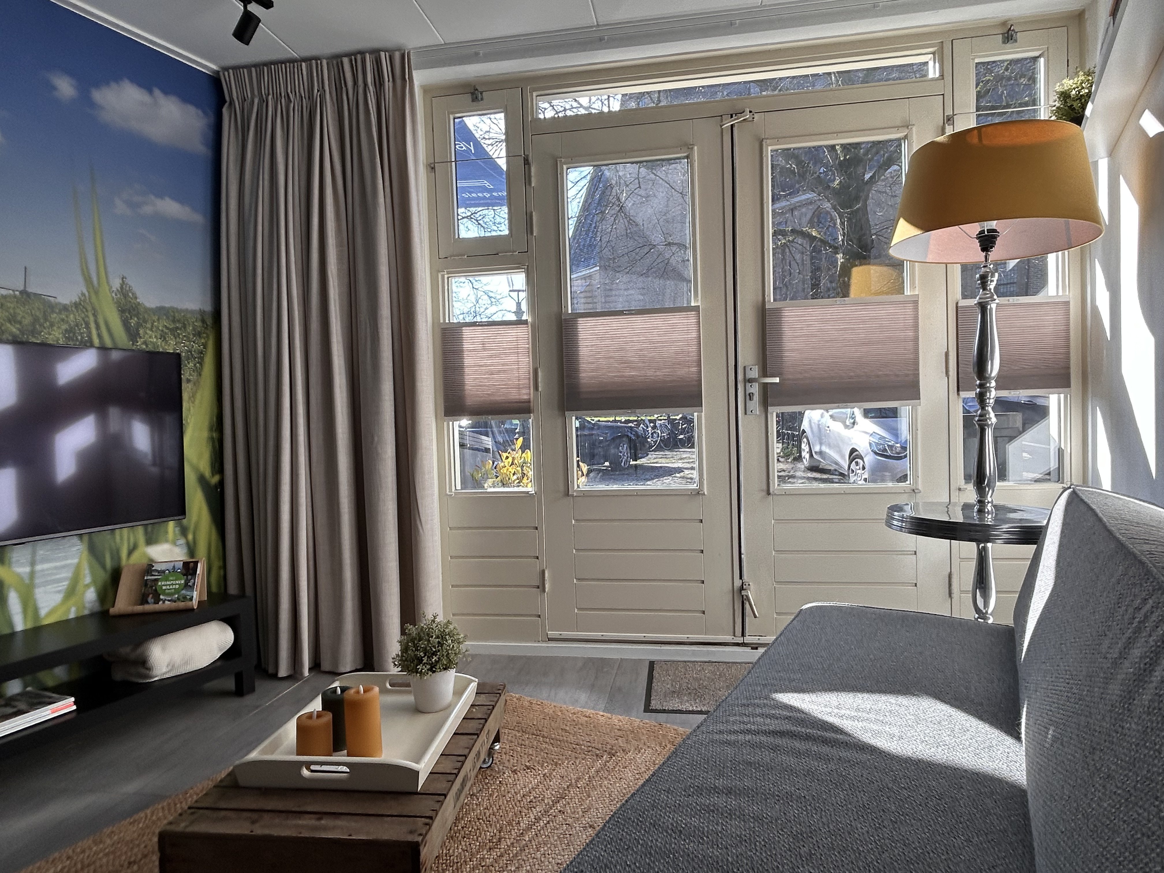 Je logeert in een sfeervolle ruimte met een eigen ingang, woonkamer met kitchenette, badkamer en een knusse slaapkamer op de eerste verdieping. Sommige elementen in het interieur dragen een verhaal in zich – zoals de salontafel gemaakt van een oude bollenkist van mijn vader.
